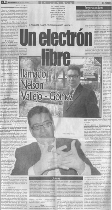 Para ser un pensador se viste como diplomático. Para ser un diplomático habla como pensador. Nelson Vallejo Gómez es un colombiano que desde un 20 años se fue a vivir a Francia, hoy es empleado de carrera del Ministerio de Educación de ese país y saca tiempo para reflexionar sobre los tiempos que corren.